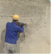 采用機(jī)械徹底、完整打磨混凝土基層表面,除去原表面的反堿、塵土、薄膜、油漆、表面涂層及其它外來(lái)物,并鏟除疏松、空鼓和蜂窩結(jié)構(gòu),使表面徹底浸透,除去積水和明水